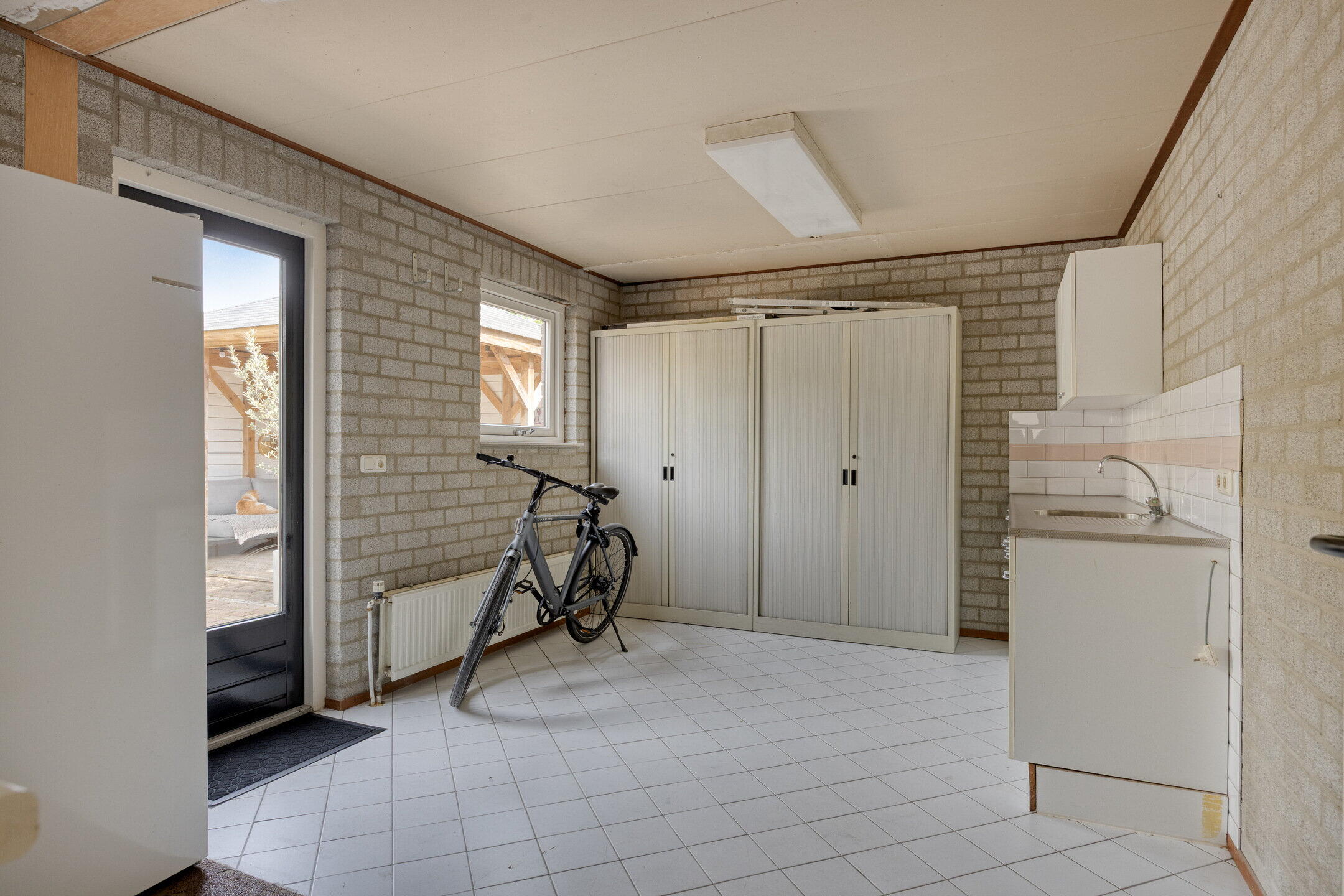 Grote bijkeuken/berging met verwarming en keukenblok met water